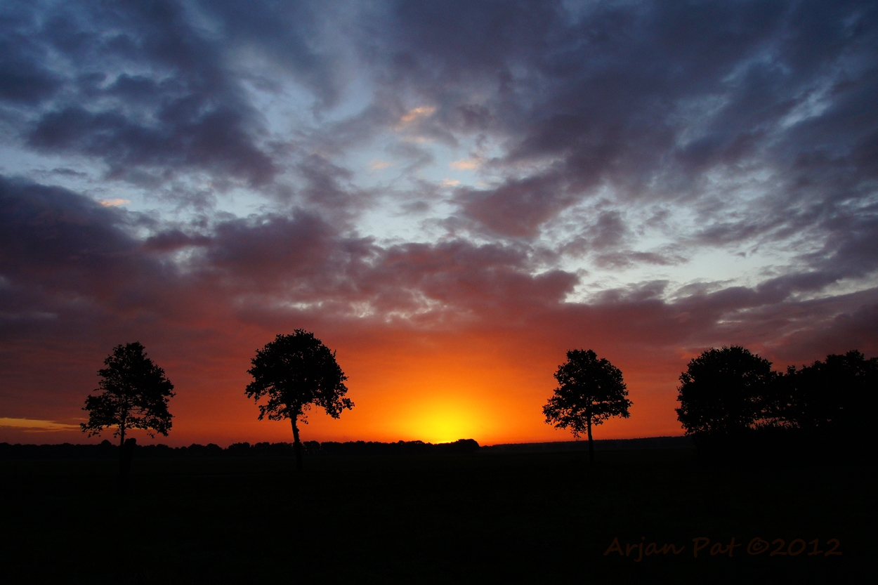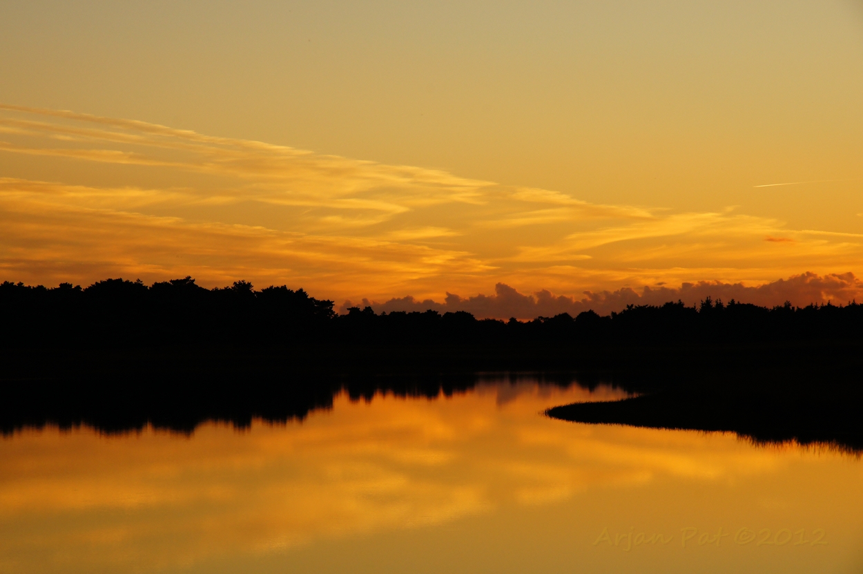 Zonsondergang zoals te zien tijdens een avondwandeling over het Hijkerveld. Deze foto is uitgezonden in het televisieprogramma 'Drenthe Nu' van RTV Drenthe.