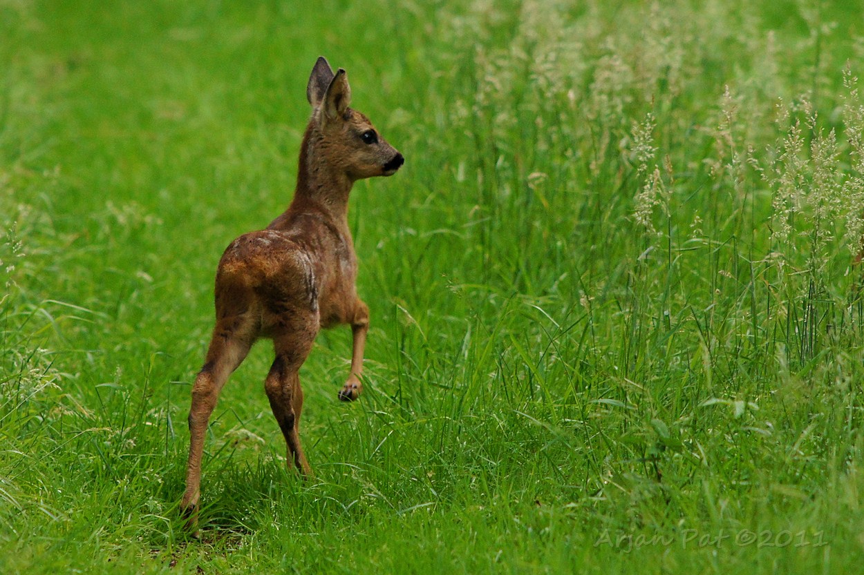 sprinkhaan, wespendief, reekalf en paddenstoelen.