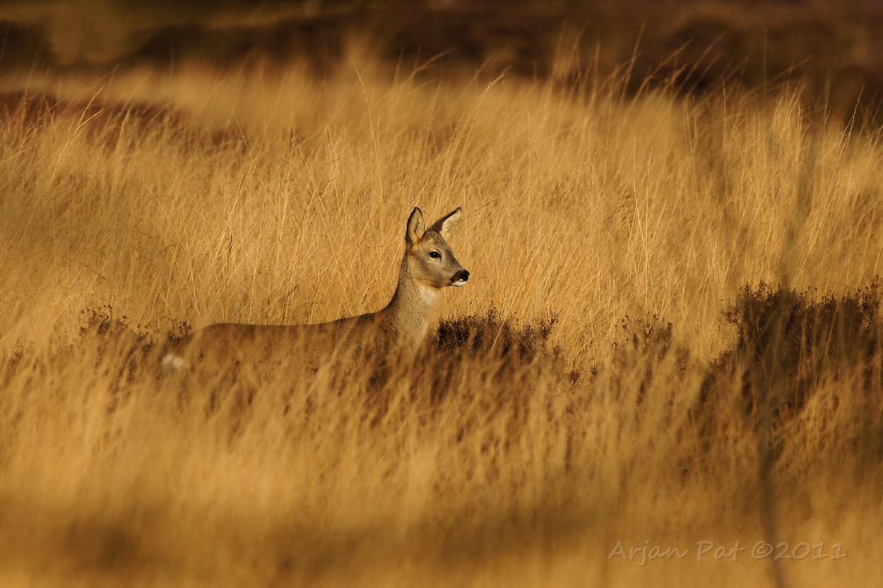 Met o.a jonge ree en zonsondergang.