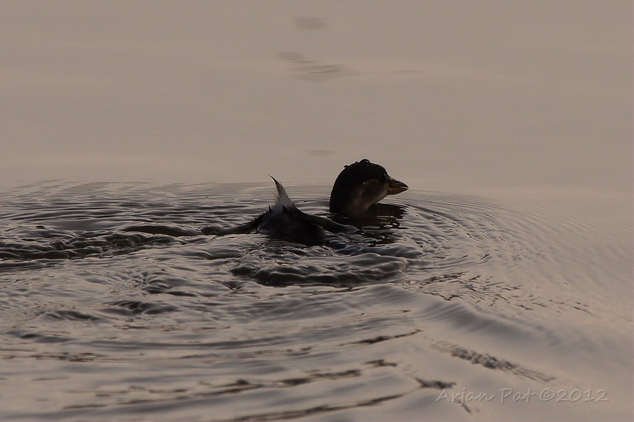 Een of ander duikeendje, eigenwijs met z'n staartje in de lucht.