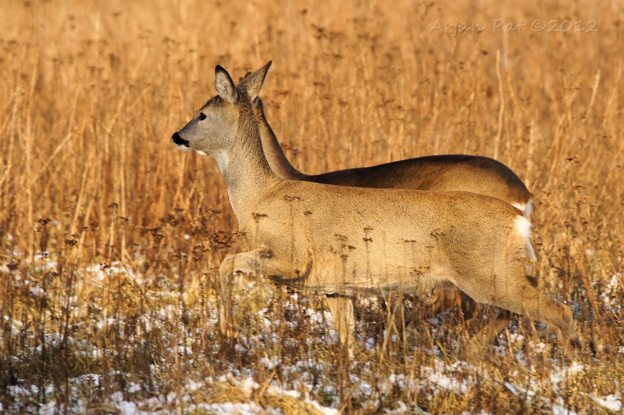In de verte zag ik ze deze twee reeën al aan komen rennen; bek ver open en tong soms buitenboord.