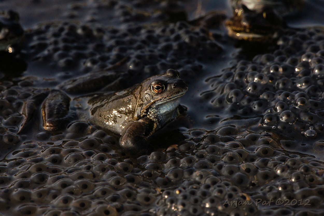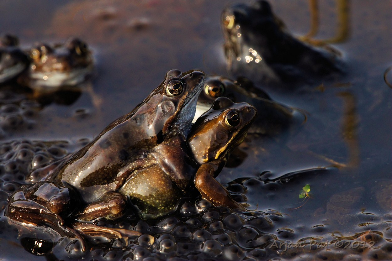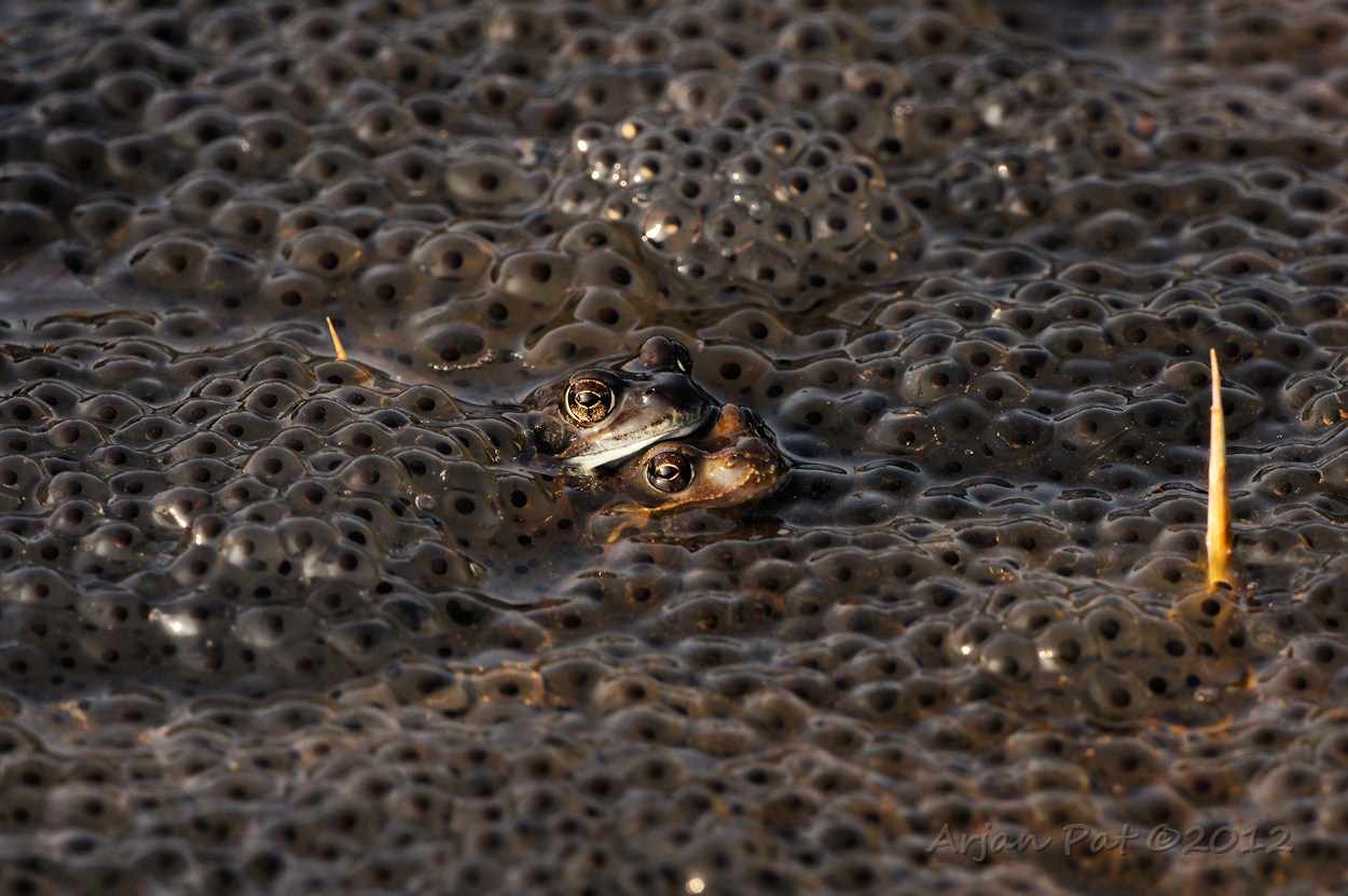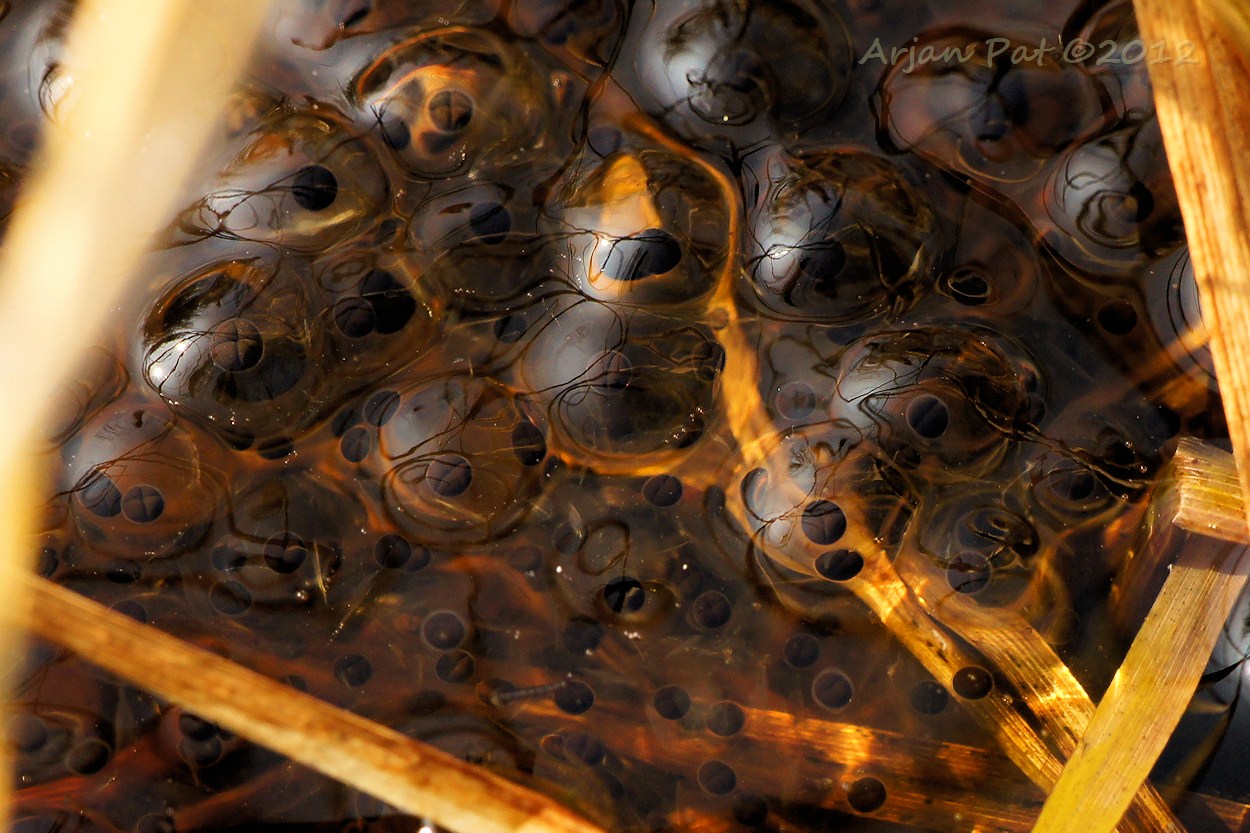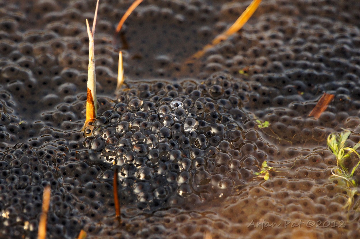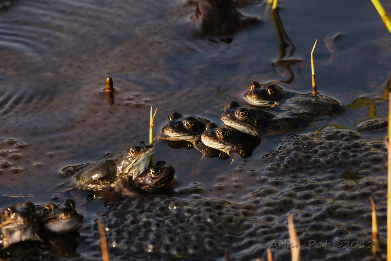 In een piepklein slootje met stilstaand water waren, net als vorig jaar, weer kikkers en kikkerdril te zien. Sommigen hebben de vorst van vorig jaar dus toch overleeft.