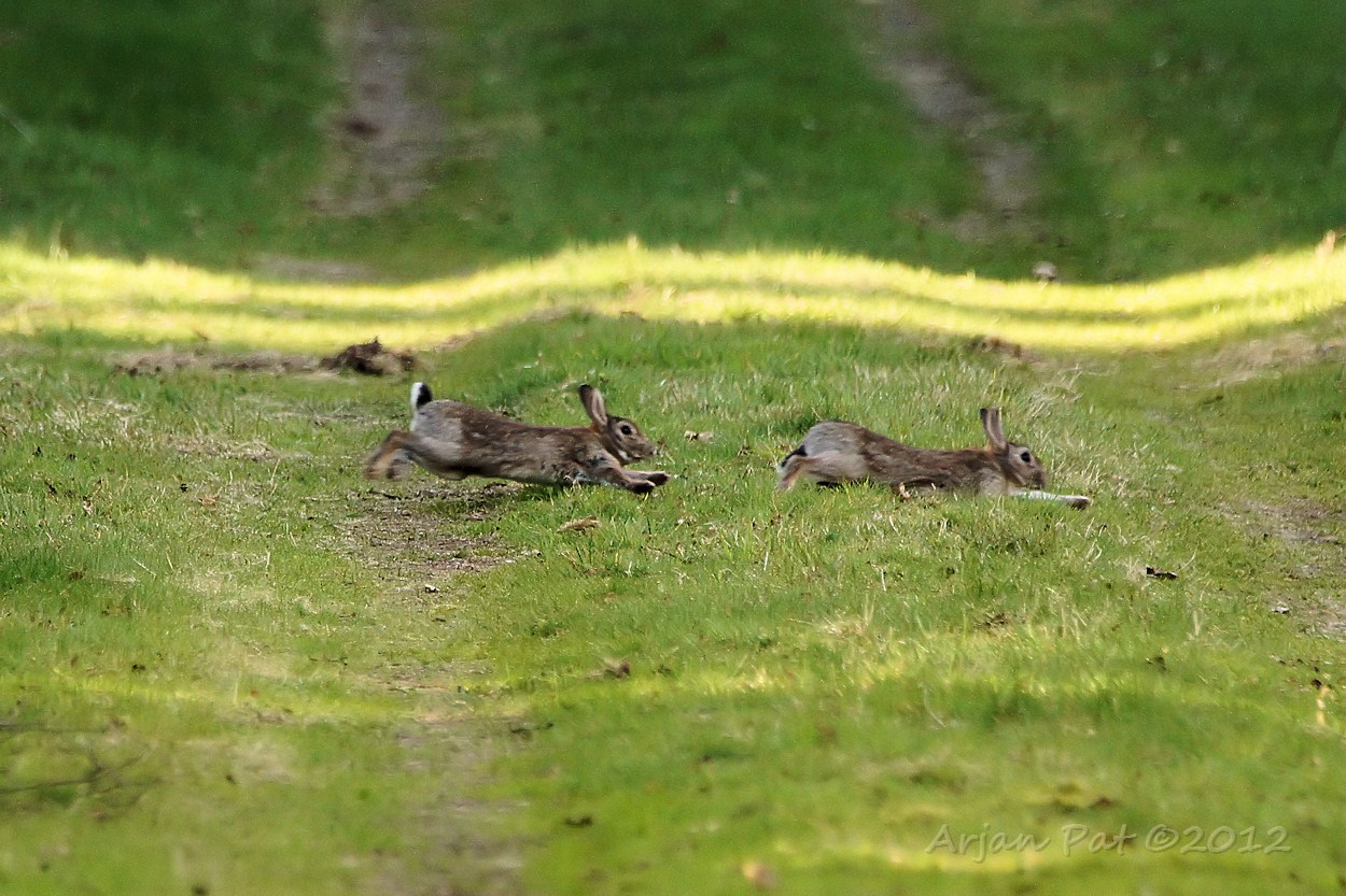 Konijnen op jacht.