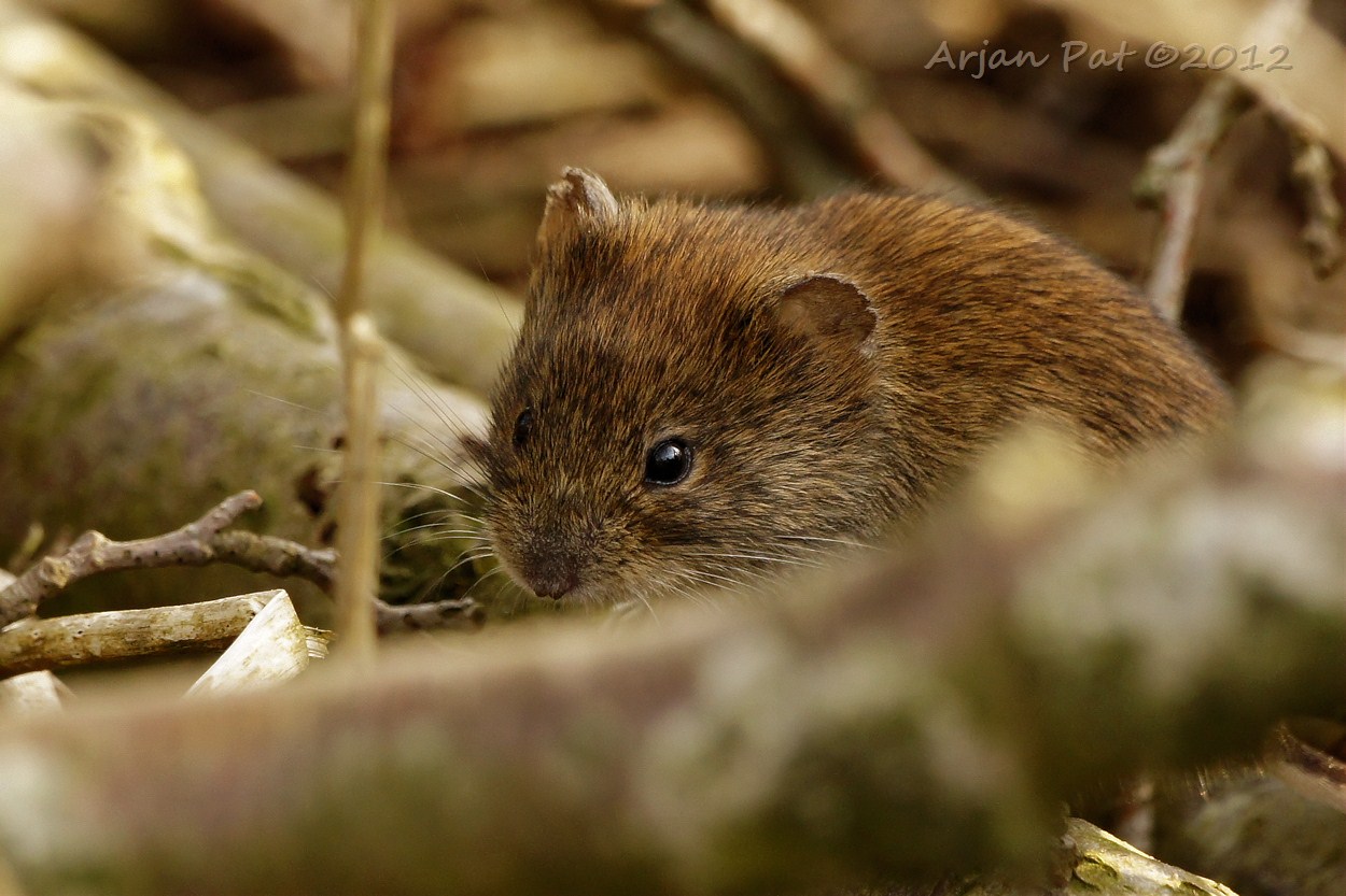 Naast deze muis heb ik de bunzing een hele poos kunnen bekijken. Van de bunzing heb ik maar 1 (slechte) foto kunnen maken. Hij zat constant in de slootwallen tussen allerlei begroeiing...