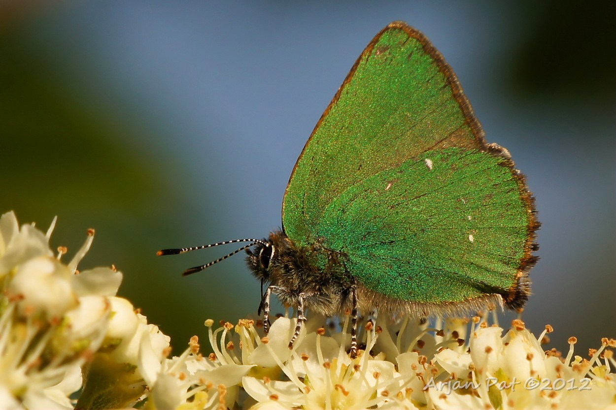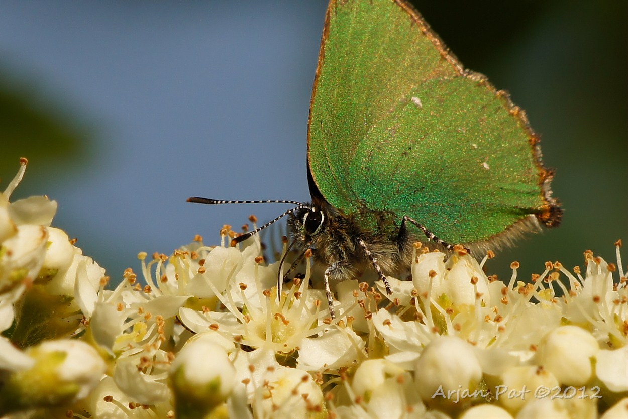 Reegeit knabbelend aan hoger gelegen eikenblad.