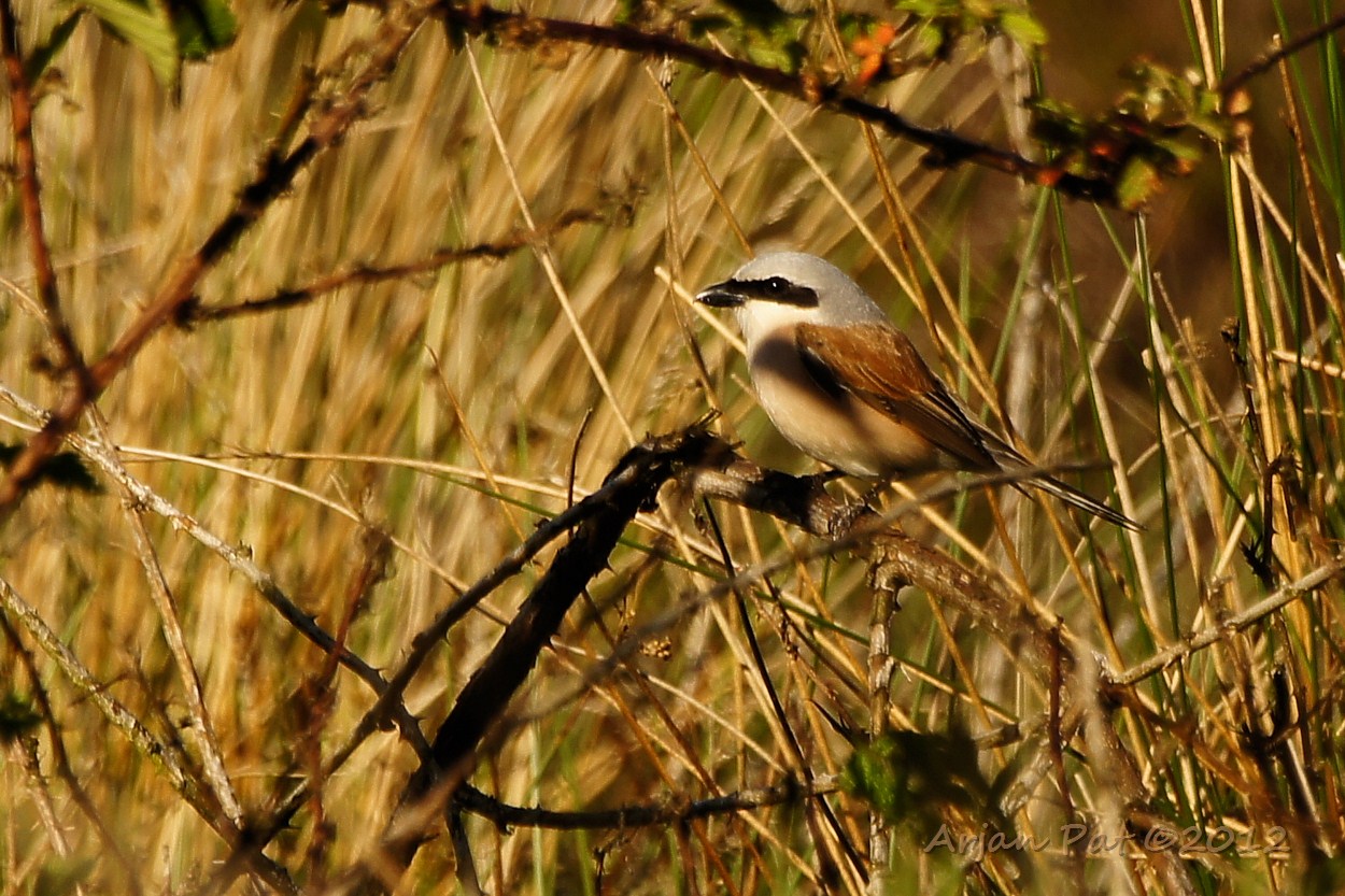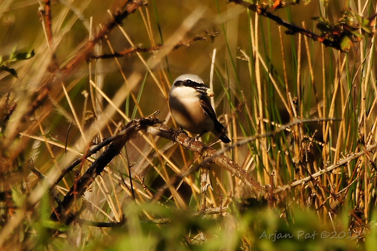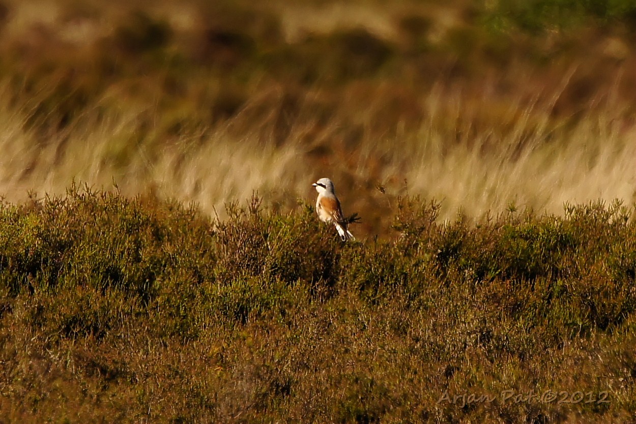 Een boel geritsel in het gras. Ik dacht aan een muis of zo, maar het waren 3 of meer uit de kluiten gewassen motvlinders. Hier zie een mannetje en een vrouwtje duidelijk. Het tweede mannetje zit links ietwat verscholen.