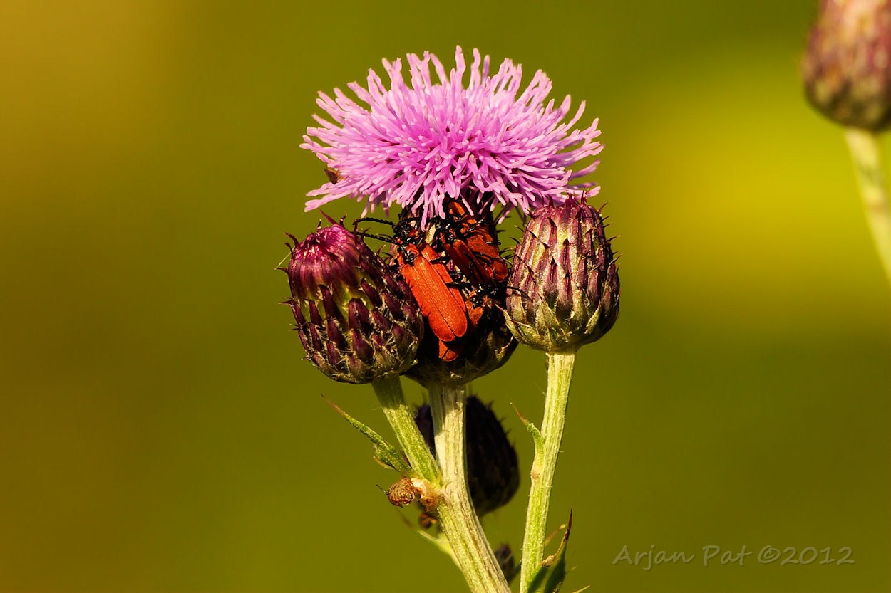 Gezellige bijeenkomst daar met z'n allen onder d'n distelblom. Waarschijnlijk aan een lekker ontbijtje. (???)