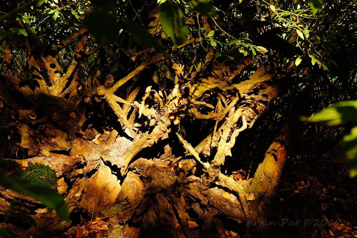 Nadat de bui overgetrokken was kwam ik erachter, dat er een heel grote zwam zich tegoed deed aan de achterkant van deze reus.