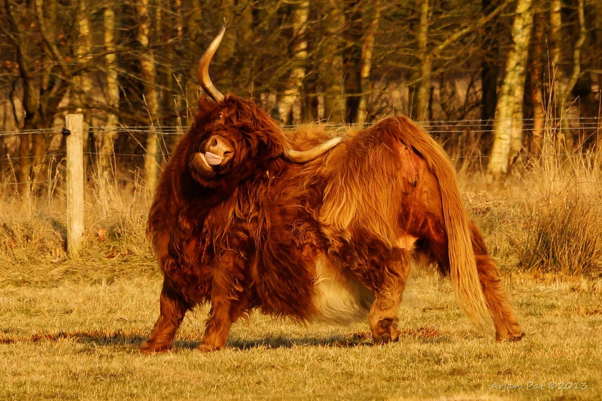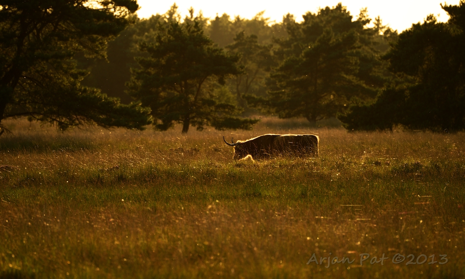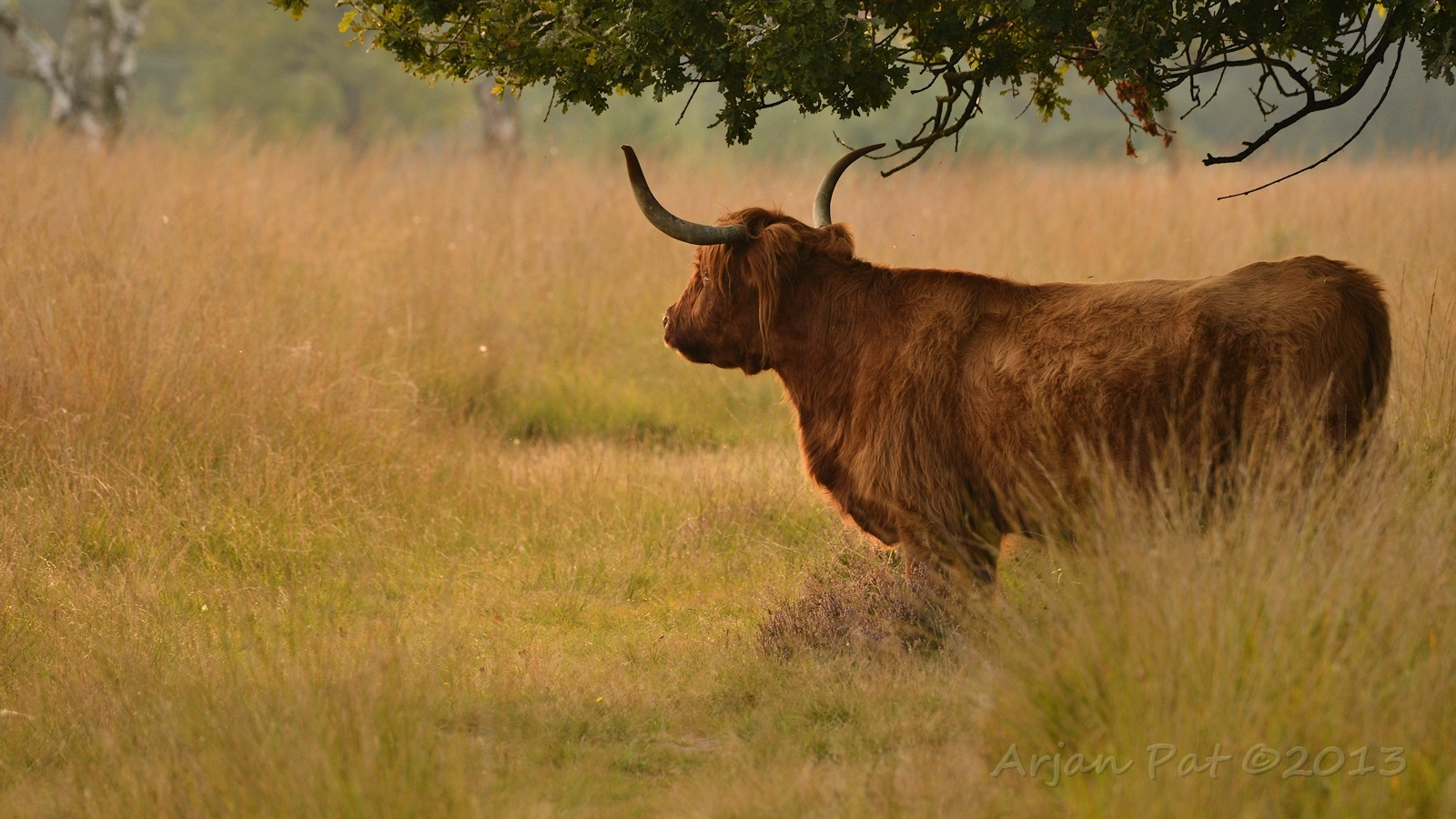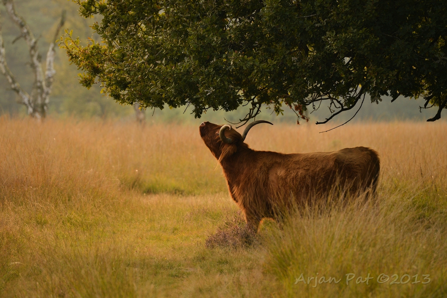 Schotse Hooglander kijkt uit over het Hijkerveld.