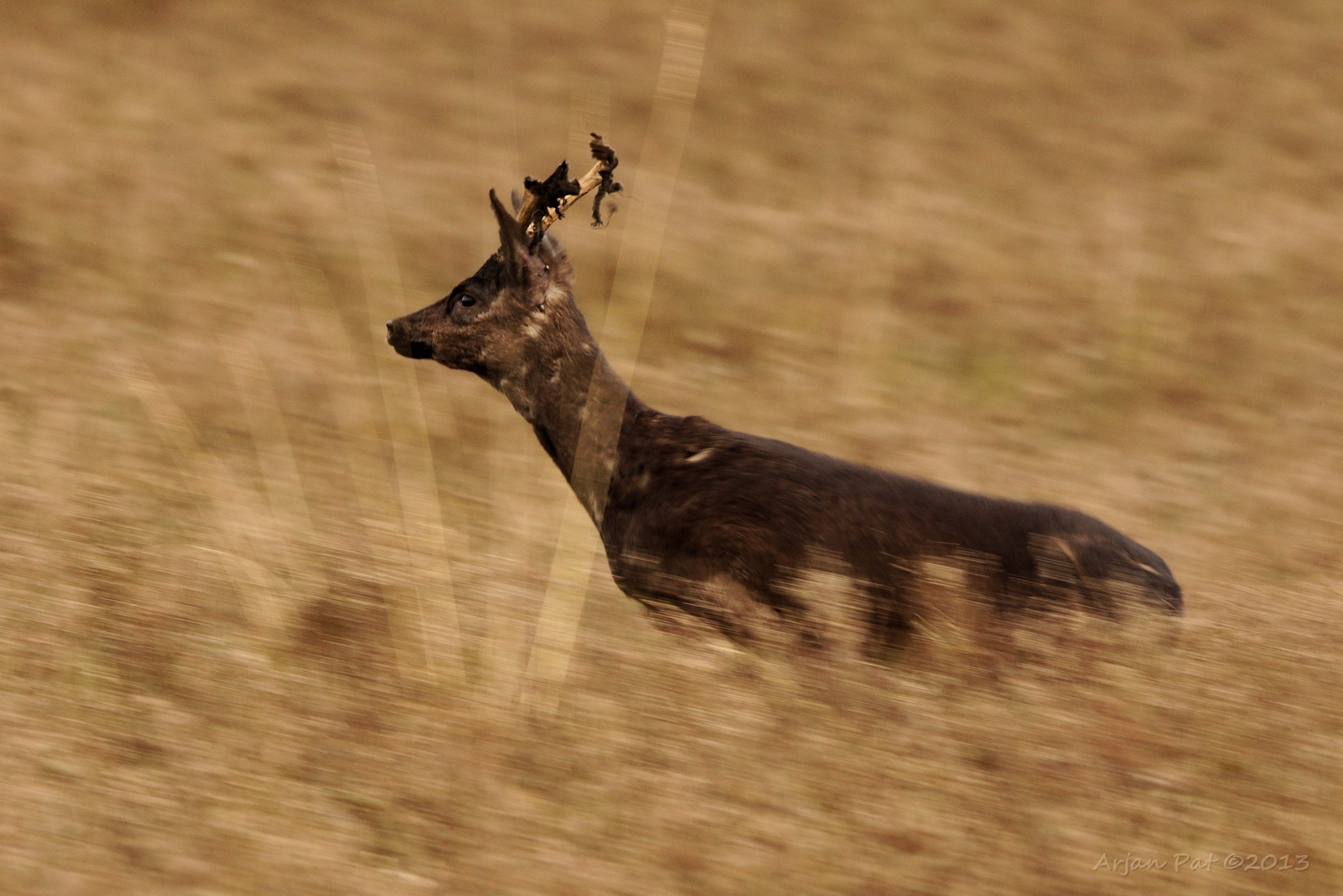 Net over het hoge grasgewas was een grazende reebok te zien....