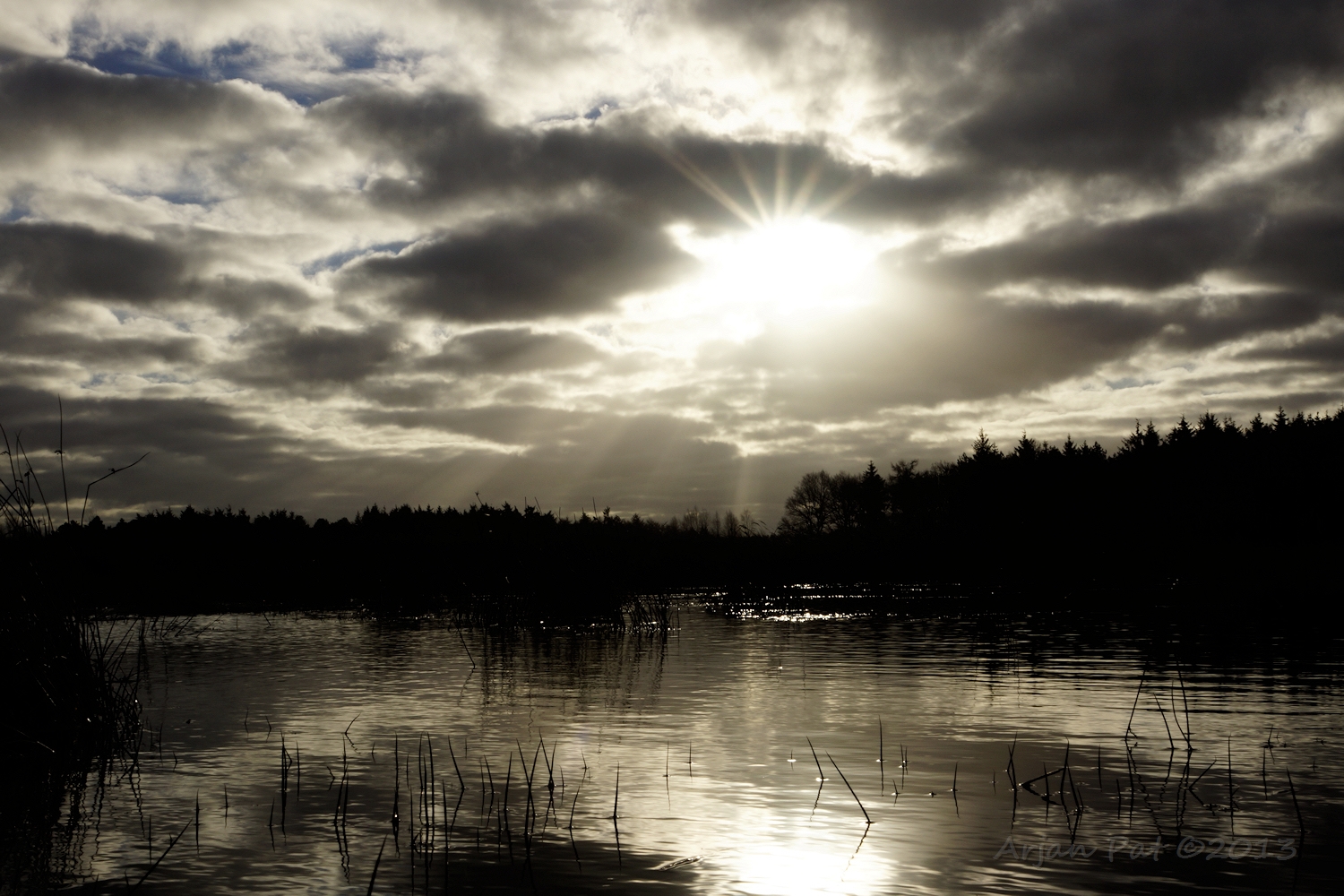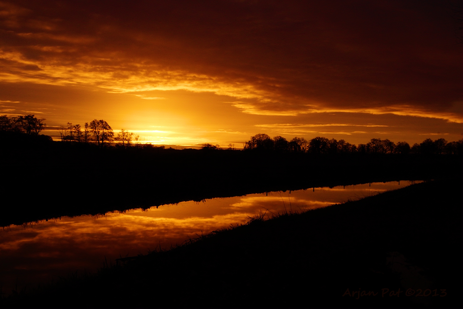 Ik sta midden op een landweggetje, dus verscholen achter een boom of iets dergelijks. Hij moet mij kunnen zien, maar doet dat niet.