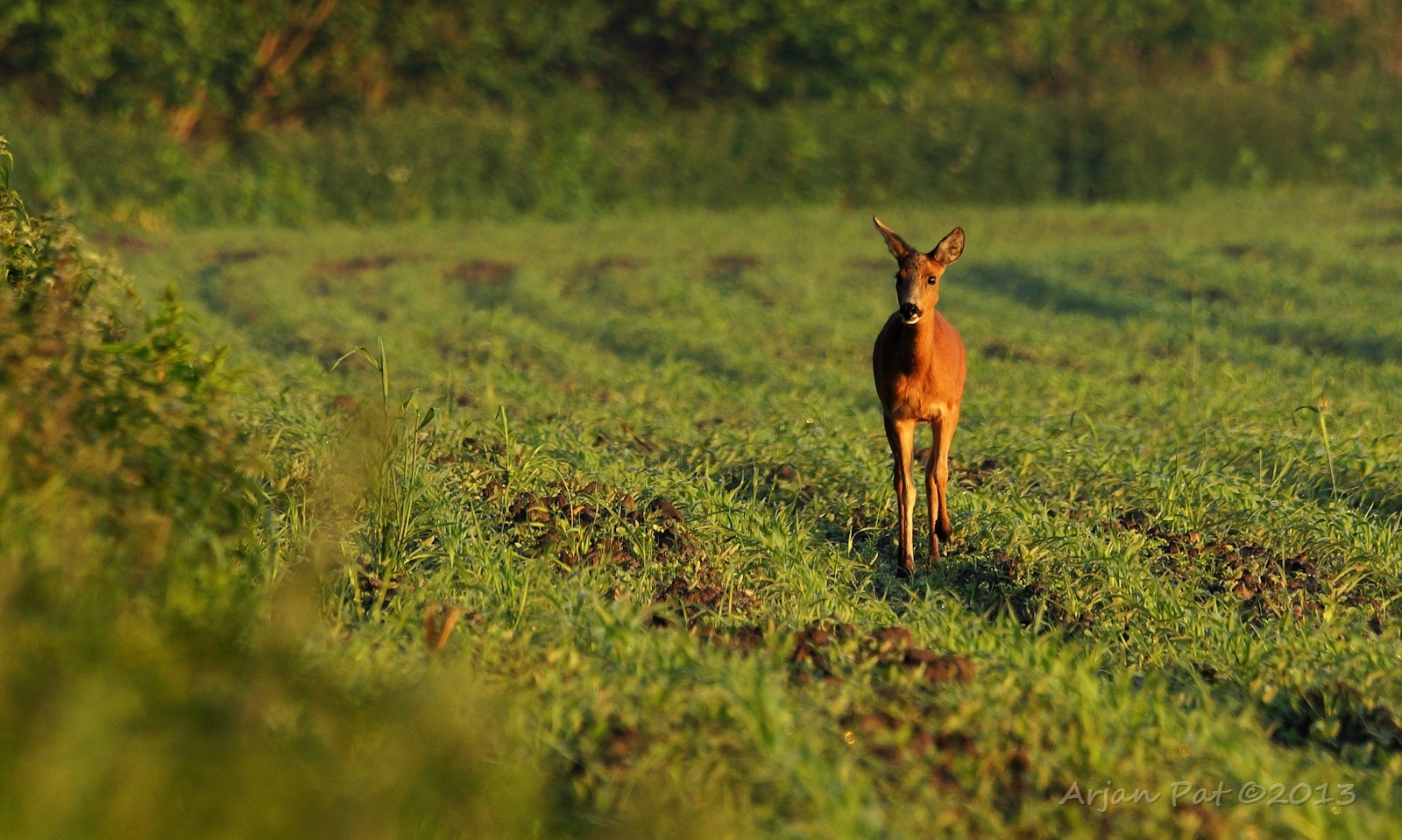 Ik was iets te laat om de zon op te zien komen aan de horizon (direct al verslapen op m'n eerste vakantiedag). Maar de zon scheen wel mooi onder de bomen door op dit weggetje, dat rood opgloeide.